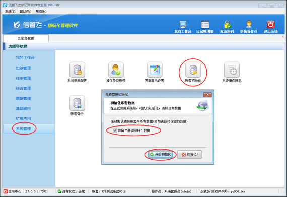 默認初始化會刪除軟件內所有數(shù)據(jù),我們可以根據(jù)自己的實際需要去選擇需要保留或刪除“基礎資料”,可打勾選擇要保留的數(shù)據(jù)內容。點“開始初始化”按鈕等待軟件執(zhí)行完成即可,如下圖2所示。