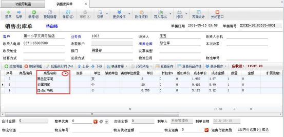 信管飛送貨單軟件、信管飛RMS軟件等支持開單直接輸入商品,有時客戶需要按照商品輸入順序進行打印,開單直接輸入商品時如果不小心點到表頭會自動啟用排序功能,會導致不按照正常輸入順序排列。如下圖1所示: