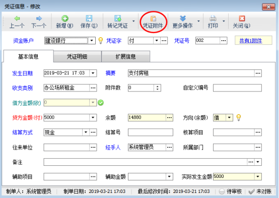 信管飛出納記賬軟件、信管飛RMS標準版和專業版在新增或者修改憑證信息時,支持添加文檔、圖表等憑證附件資料,可掃描或導入與出納憑證相關的電子文件,方便用戶更全面、直接地查詢日記賬憑證的全過程,有利于企業對日記賬憑證的管理。下面我們以信管飛出納記賬軟件專業版的銀行日記賬憑證為例介紹一下如何添加憑證附件。