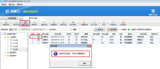 信管飛出納記賬軟件標準版和專業(yè)版在新增保存日記賬憑證后都可以直接審核憑證,憑證審核后,不允許直接刪除?蛻羧绻枰獎h除已審核的憑證,需要先反審憑證,再進行刪除。下面我們介紹一下在信管飛出納記賬軟件專業(yè)版中如何刪除已審核的日記賬憑證?
