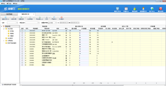 在功能導(dǎo)航窗點“采購管理”—》“智能采購計劃”即可進入本功能,如下圖所示: