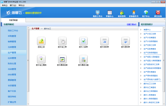 實際的企業(yè)生產業(yè)務中經常會涉及委外代加工業(yè)務,有時候需要委托外部工廠幫我們生產一些配件,有時候需要幫忙生成半成品,然后委外生產的成品或半成品,再進入我們車間進行再加工(如包裝封箱、或二次加工等)。信管飛RMS標準版、專業(yè)版及以上版本可以購買 “委外加工管理”擴展功能模塊來管理此業(yè)務。