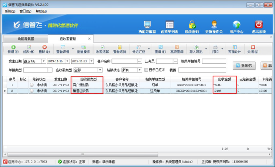 信管飛送貨單軟件、信管飛RMS軟件等支持錄入客戶的預付款,客戶預付款是指客戶付定金給我們,在實際發貨后會收回應收款,此時軟件收款結算中支持客戶應收款可以抵消之前客戶的預付款。本文以“信管飛送貨單軟件”為例,示范下應收款如何抵消客戶預付款?