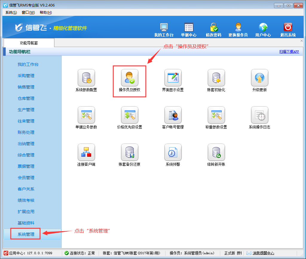 執行賬套初始化操作后,會刪除賬套內相應的數據,因此務必提前做好備份,謹慎操作!為了避免操作員誤操作,導致數據丟失,軟件內支持設置操作員不可進行賬套初始化操作,下面以信管飛RMS為例來演示一下具體的操作步驟。