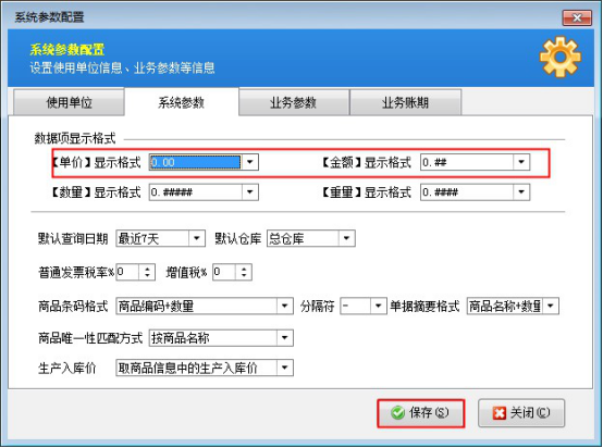在系統參數中對“單價”、“金額”選擇相應的顯示格式后點擊“保存”按鈕即可,在軟件中這些數據項的顯示格式會改變。如圖3所示設置后,在圖4的送貨單界面可看到相應的數據項的顯示格式。