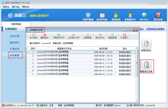 信管飛軟件旗下所有軟件都支持云賬套模式,數據存儲在云端,本地有網絡可直接賬號密碼連接數據,默認每天自動備份在云端,如需要本地存儲備份數據,軟件支持下載云端備份到本地,本文以“信管飛送貨單軟件”為例,示范下如何下載云端備份到本地電腦上。