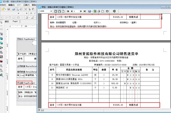 信管飛送貨單軟件、信管飛RMS軟件、信管飛倉庫管理軟件等都支持設(shè)計打印模板格式,軟件默認打印模板格式的合計是每頁都顯示,有客戶需要存在打印多頁的情況下,可以把合計放在最后一頁顯示,本文示范下如何修改打印模板合計在最后一頁顯示。