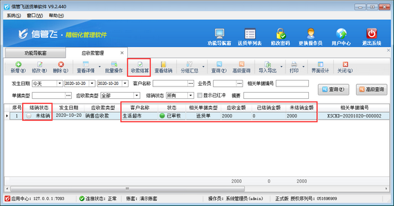 收款結(jié)算單用來登記收款信息(收款對(duì)象即客戶、收款賬戶、收款金額、經(jīng)手人等),并結(jié)銷應(yīng)收款記錄。正常情況下,應(yīng)收金額為多少,客戶需支付我們多少貨款,但是部分情況下,客戶支付給我們貨款時(shí)可能因?yàn)楦鞣N原因只能給我們支付其中一部分,然后過段時(shí)間在支付剩余貨款。本篇文章以送貨單打印軟件為例演示一下部分收款的情況下如何開收款結(jié)算單。