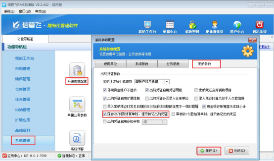 歡迎下載試用收/付款保存或?qū)徍藭r(shí)可提醒轉(zhuǎn)記出納憑證的軟件:信管飛RMS軟件