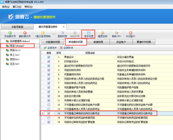 歡迎免費下載試用這款支持操作員權(quán)限設(shè)置的出納記賬軟件:信管飛出納記賬軟件。