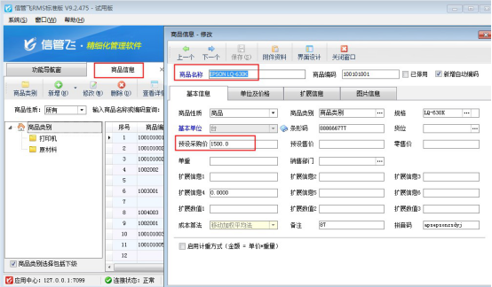 需要取商品信息中的價格,需要先在商品信息中添加好預設采購價,在功能導航窗點擊“基礎資料”—》“商品信息”,選擇一個商品點擊修改,輸入下預設采購價(示例商品:EPSON LQ-630K,預設采購價1500),如下圖所示: