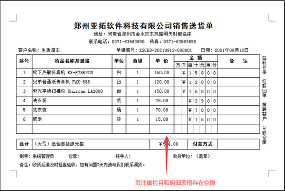 本篇文章以送貨單軟件為例介紹一下,打印格式模板中頁注腳和明細表格有空隙的情況下,如何處理?