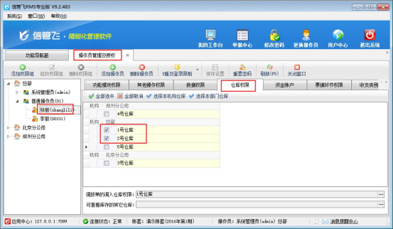 信管飛RMS軟件、信管飛倉(cāng)庫(kù)管理軟件可管理商品的進(jìn)出庫(kù)情況,可增加多個(gè)倉(cāng)庫(kù)進(jìn)行分別管理,有用戶存在多個(gè)操作員,想設(shè)置操作員可管理不同的倉(cāng)庫(kù),本文以“信管飛RMS軟件”為例,示范下如何控制操作員的可查看倉(cāng)庫(kù)權(quán)限。