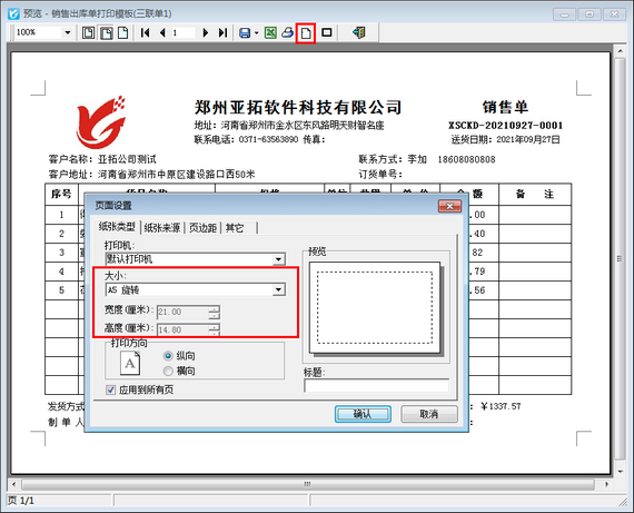 信管飛系列軟件都支持自定義設計打印模板格式,軟件打印模板格式都有其默認模板大小,有時用戶需要修改此模板大小,該如何修改?本文以“信管飛送貨單軟件”為例示范下如何修改,首先預覽下當前打印效果上的模板大小,如下圖所示: