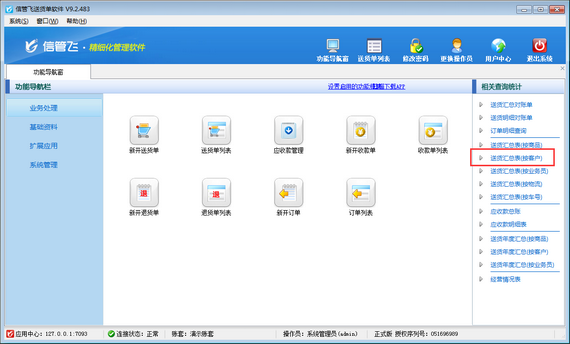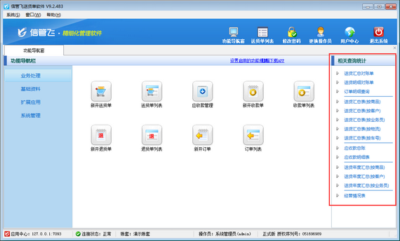 歡迎下載試用這款支持各類統(tǒng)計查詢報表的送貨單打印軟件:信管飛送貨單軟件。