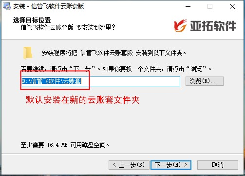 軟件升級更新設(shè)置了更新程序,登錄時會提示版本不一致,需要升級更新,直接點(diǎn)擊“確定”按鈕,彈出提示信息是否下載更新,點(diǎn)擊“是”下載版本,下載完成后點(diǎn)擊“立即安裝”,會彈出安裝界面。下一步默認(rèn)安裝路徑在“D盤信管飛軟件云賬套文件”,點(diǎn)擊下一步繼續(xù)安裝,如下圖所示: