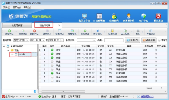 信管飛出納記賬軟件是一款針對各類企事業單位財務出納記賬開發的,集現金日記賬記賬與點驗、銀行日記賬記賬與核帳、應收應付往來賬管理、票據管理(支票管理、承兌匯票管理)、發票管理、工資管理、員工借款管理、費用報銷管理等為一體的出納管理軟件。