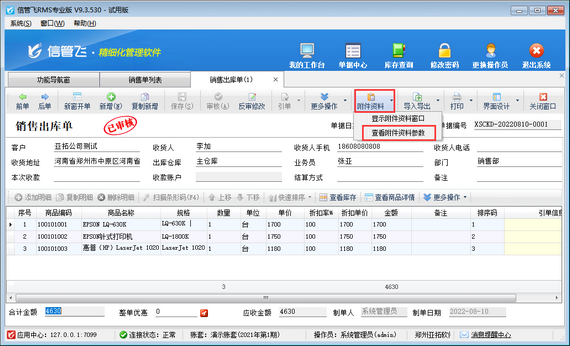 信管飛RMS軟件是進(jìn)銷存一體化的軟件,支持開單上傳附件資料管理單據(jù)附件,本篇文章以信管飛RMS專業(yè)版為例介紹一下如何設(shè)置打開銷售出庫單可直接查看附件資料窗口?