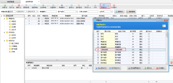 點(diǎn)擊送貨單列表,進(jìn)入送貨單列表界面,界面設(shè)計(jì)勾選出訂單合同號(hào),點(diǎn)擊保存按鈕。送貨單列表界面即可顯示出訂單合同號(hào)。