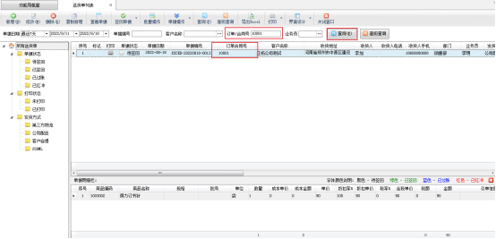 在送貨單列表訂單/合同號(hào)輸入合同號(hào),點(diǎn)擊查詢按鈕,可以查詢到此訂單合同號(hào)的送貨單。