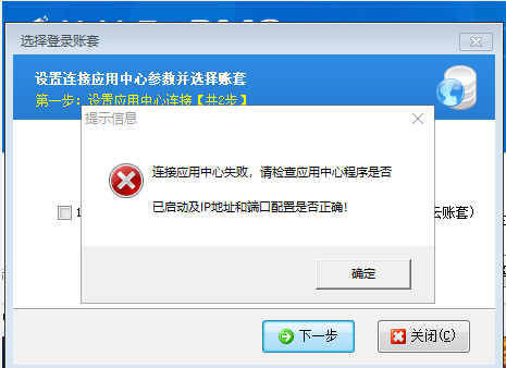 軟件登陸時系統(tǒng)提示“連接應(yīng)用中心失敗,請檢查......”如何處理?