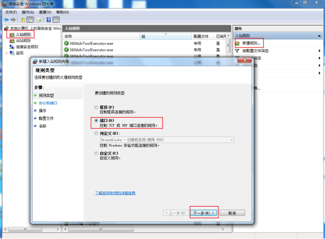 打開“控制面板”→“系統(tǒng)和安全”→“Windows防火墻”→“高級設(shè)置”→“入站規(guī)則”→“新建規(guī)則”→選擇“端口”→點擊“下一步”→“輸入特定本地端口”→“下一步”→“下一步”→“輸入名稱”,然后點擊確定按鈕完成操作。