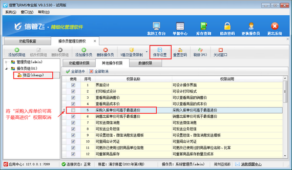 歡迎免費下載試用這款可以設置操作員銷售價不可低于最低售價、采購單價不可高于最高采購價的進銷存管理軟件:信管飛RMS。