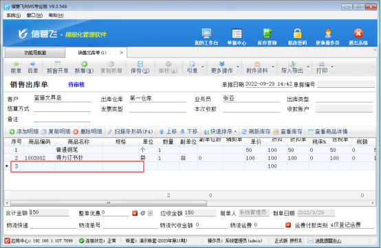 此參數(shù)啟用后,新開銷售單添加商品后會自動增加一行新的空行,如下圖所示: