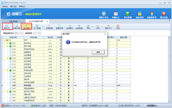 引入數(shù)據(jù)后,點(diǎn)擊工具欄“自動(dòng)調(diào)平”按鈕進(jìn)行調(diào)平操作,調(diào)平后可點(diǎn)擊“試算平衡”,沒有問題點(diǎn)擊“保存”按鈕,保存設(shè)置,如下圖所示: