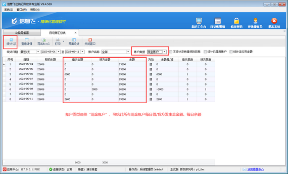 演示視頻:出納記賬軟件如何查詢每日借/貸方發生總金額演示視頻