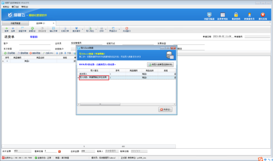 送貨單開單界面,直接導(dǎo)入EXCEL明細(xì)出現(xiàn)提示“導(dǎo)入失敗,單據(jù)明細(xì)已存在”,這是因?yàn)閷?dǎo)入的明細(xì)數(shù)據(jù)有重復(fù)導(dǎo)致的: