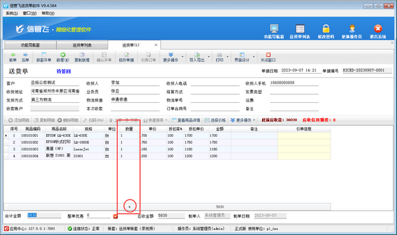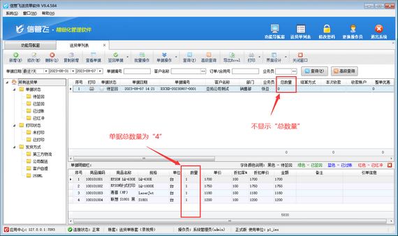 最近有用戶在使用送貨單軟件時,反饋存在以下問題,在填開送貨單時,有錄入商品數(shù)量,但是在送貨單列表不顯示送貨單“總數(shù)量”數(shù)據(jù),如下圖所示。