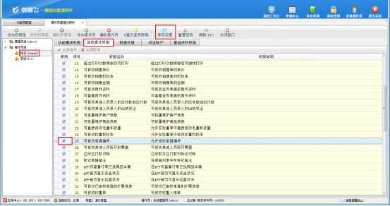 切換“系統管理員”登錄,在功能導航窗點擊“系統管理”—》“操作員及授權”進入操作員管理及授權界面,選中操作員“張亞”,點擊“其他操作權限”,勾選“可修改單據編號”權限,勾選后點擊保存。