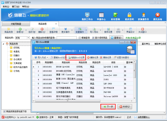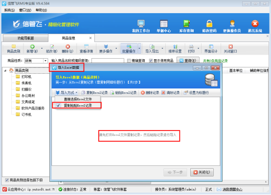 支持直接復制粘貼導入Excel數據的進銷存軟件