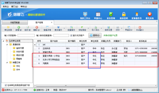 然后到“華中”類(lèi)別下從新查看客戶(hù)信息,剛才的3個(gè)單位類(lèi)別都已經(jīng)改變了,其界面如圖所示。