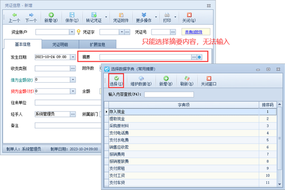 演示視頻觀看鏈接:出納憑證摘要只能選擇不能隨意輸入,如何解決演示視頻