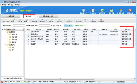 信管飛RMS支持開銷售單界面選擇發(fā)票類型,可以根據(jù)實際需要選擇不同的開發(fā)票方式。在使用過程中,不同客戶需要的發(fā)票類型可能會不一樣,為了提高開單效率,有時需要對不同的客戶設置默認發(fā)票類型,方便開單選擇客戶之后直接進行調(diào)取,本篇文章介紹一下如何批量設置客戶的默認發(fā)票類型?