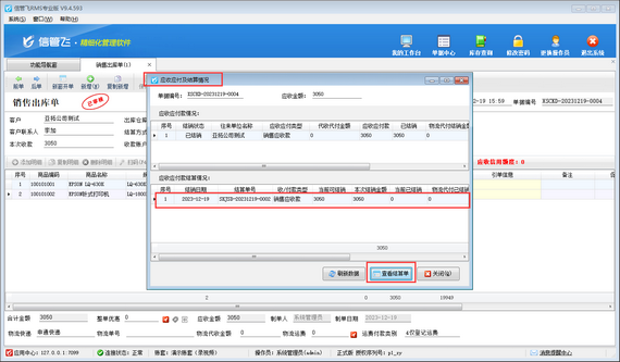 銷售出庫單保存審核完成后,在銷售出庫單界面工具欄點擊“更多操作”—》“查看應收款結銷情況”打開“應收應付及結算情況”窗口,如下圖所示。