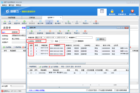 送貨單軟件支持客戶先下訂單,送貨時(shí)引用訂單發(fā)貨,有用戶存在客戶下了好幾筆訂單,發(fā)貨需要一起發(fā)貨,如何在軟件中操作?