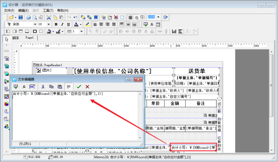 打印模板四舍五入顯示兩位,在開單界面打印下點擊“打印格式設計”,選擇打印模板,點擊“設計格式”進入模板設計器,金額設置四舍五入需要調用RMRound函數,打開金額文本框,復制取整調用數據項:[RMRound([單據主體."應收應付金額"],2)],然后確認保存,如下圖: