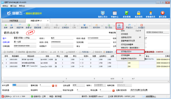 設置完成后,點擊保存按鈕,預覽查看打印樣式,如下圖: