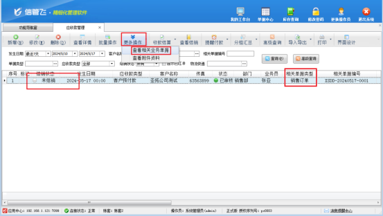 在應(yīng)收款管理界面,選擇需要?jiǎng)h除的“客戶預(yù)付款”記錄,然后在工具欄點(diǎn)擊“更多操作”—》“查看相關(guān)業(yè)務(wù)單據(jù)”,可以打開生成此客戶對(duì)應(yīng)的銷售訂單,在訂單界面點(diǎn)“反審修改”,把預(yù)收定金刪掉,重新保存單據(jù),對(duì)應(yīng)的客戶預(yù)收款記錄自動(dòng)刪除。