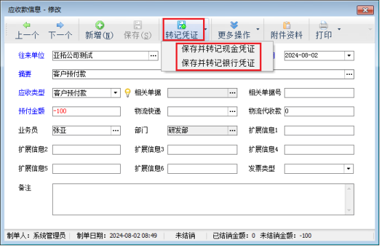 此文章相關演示視頻:新增客戶預付款界面如何直接轉記出納憑證演示視頻
