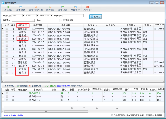 引單窗口右下方勾選“已發(fā)貨不顯示”,勾選后點擊查詢按鈕,此時已發(fā)貨訂單已不顯示了。