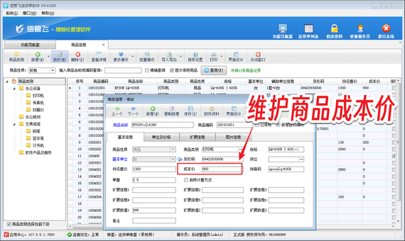 首先,信管飛送貨單軟件支持一鍵維護商品成本。只需在“基礎資料”模塊中的“商品信息”內,簡單錄入每個商品的成本價,系統(tǒng)就能為你自動保存,讓商品管理變得井井有條。這樣,無論你的商品種類多么繁雜,都能輕松應對。