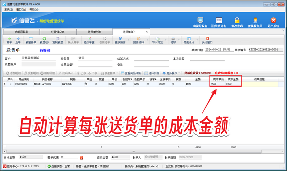 更重要的是,信管飛送貨單軟件還能自動計算利潤。每當你開具一張送貨單時,系統(tǒng)都會根據商品的銷售價和成本價自動為你計算出銷售毛利。這樣,你再也不用為繁瑣的計算而煩惱,利潤情況一目了然。
