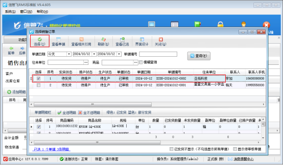 以上兩種方式都可以根據銷售訂單進行發貨處理,選中其中一種。