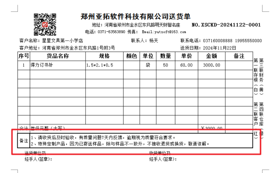 功能導航欄點“銷售管理”-》“銷售出庫單”,進入銷售單開單界面,開單保存預覽之前的模板,備注邊框線是正常顯示的,如圖:
