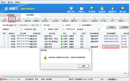 【注意】:僅未結銷狀態下的應收款可支持修改操作。