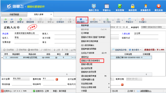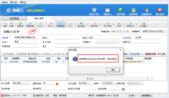 信管飛RMS軟件是集進(jìn)銷(xiāo)存和應(yīng)收應(yīng)付款管理一體的軟件,有客戶(hù)咨詢(xún)需要反審修改單據(jù)的單價(jià)時(shí)修改不了,如何解決,提示如下圖所示: